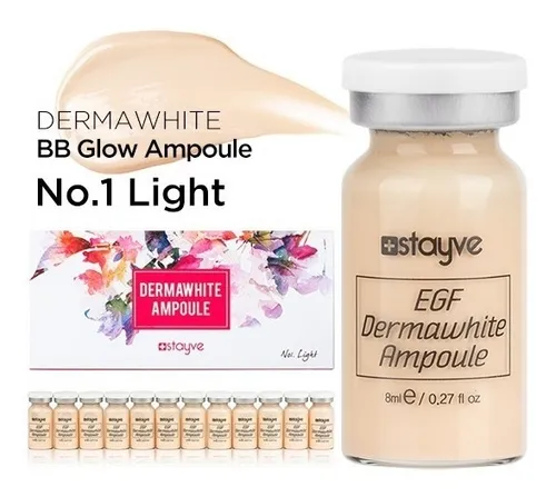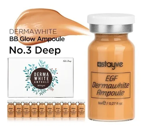 Dermawhite es una ampolla avanzada formulada con Niacinamida y Oligopéptido Humano-1, diseñada para ofrecer un blanqueamiento visible, mejora de arrugas y un brillo natural en la piel, todo en un solo tratamiento. Su suero de color ilumina instantáneamente el rostro, aportando un efecto glow suave y uniforme durante el procedimiento.