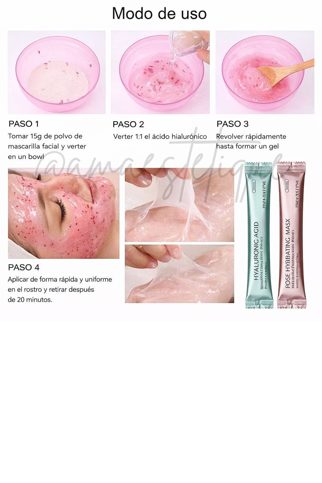 ✔ Hidratación profunda ✔ Mejora la textura y luminosidad ✔ Efecto refrescante y calmante ✔ Mejora la absorción de activos ✔ Fácil preparación y aplicación ✔ Retiro en una sola pieza